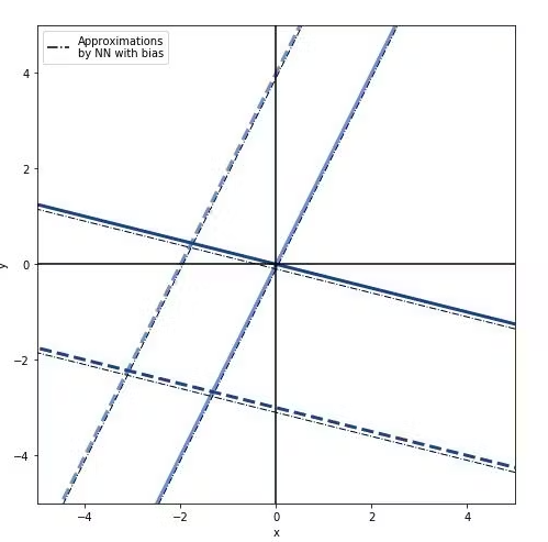Geometric representation of weighted sum with and without Bias
